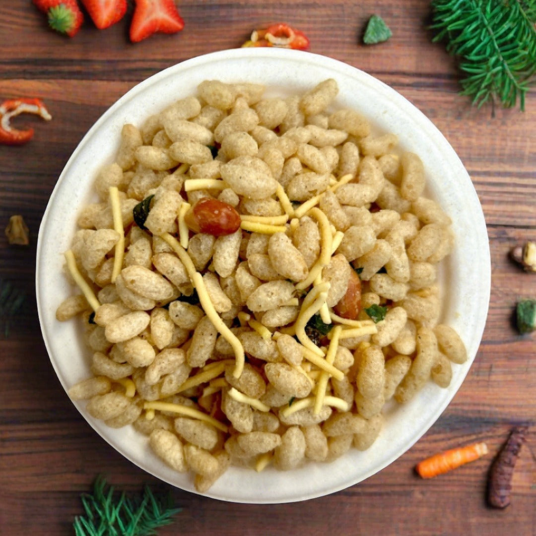 Roasted Jowar Chivda is a delightful and healthy snack crafted from nutritious Jowar kurmura, roasted besan sev, and a mix of aromatic spices. Light, crunchy, and flavorful, this snack is ideal for those seeking a guilt-free treat that satisfies cravings while nourishing the body. The addition of hing and jeera enhances the taste and aroma, making it a perfect choice for any time of the day.