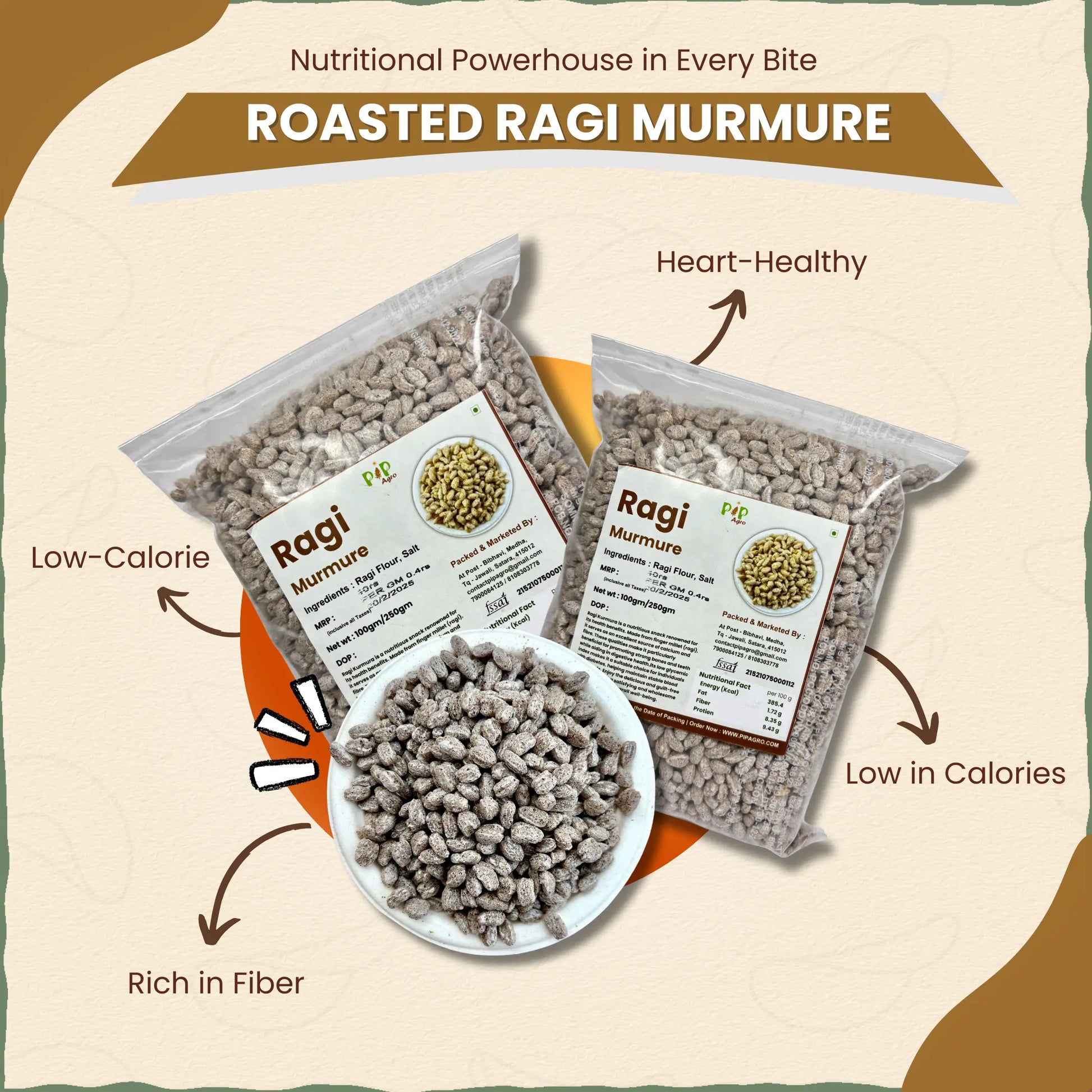 Roasted Ragi Kurmura is a light and nutritious snack made from finger millet (Ragi). It is packed with essential nutrients like calcium and dietary fiber, promoting strong bones, healthy teeth, and improved digestion. Its low glycemic index makes it a suitable snack for individuals managing diabetes. Enjoy its crunchy texture and mild earthy flavor as a guilt-free and wholesome treat that contributes to overall health and well-being.