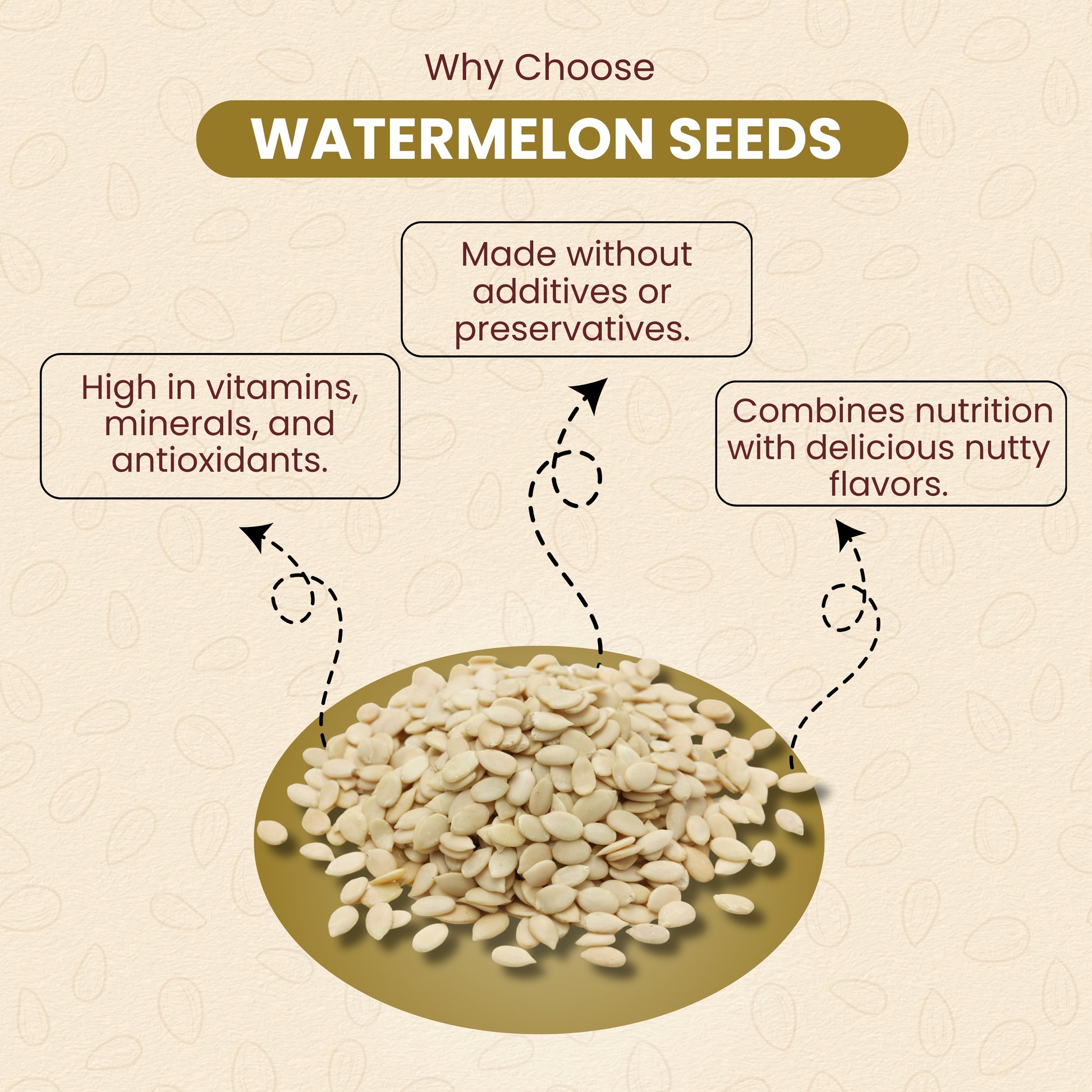 Watermelon Seeds are nutrient-dense super seeds, packed with vitamins, minerals, and antioxidants. These seeds are often overlooked but are a powerhouse of health benefits. With a nutty texture and crunchy taste, they can be consumed as a snack or used as a topping for your favorite dishes. Watermelon seeds are versatile, making them perfect for sprinkling over breakfast, soups, salads, or even grinding into a fine powder to add to various recipes.